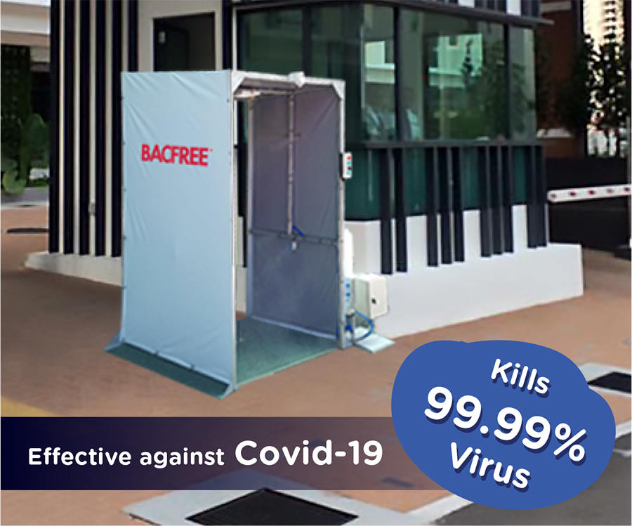 Placed at the entrance of the premise to disinfect every visitor who enters and exits automatically.