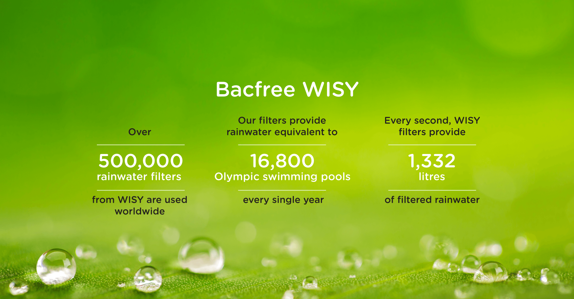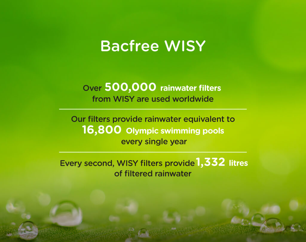 Bacfree’s WISY 4-Step System turns rainwater into clean, clear water that is safe to use in any home.Rainwater is collected, filtered, and stored, ready for anytime you need it.