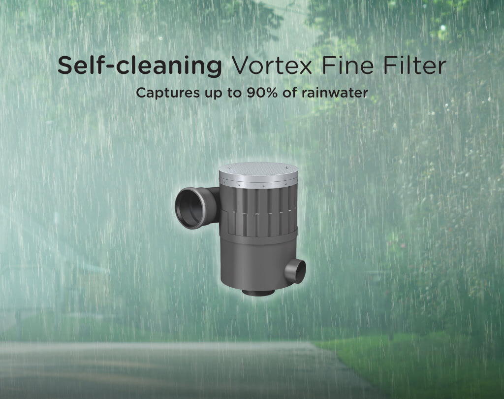 During the first step of filtration process, up to 90% of rainwater is filtered and diverted into the rainwater tank.